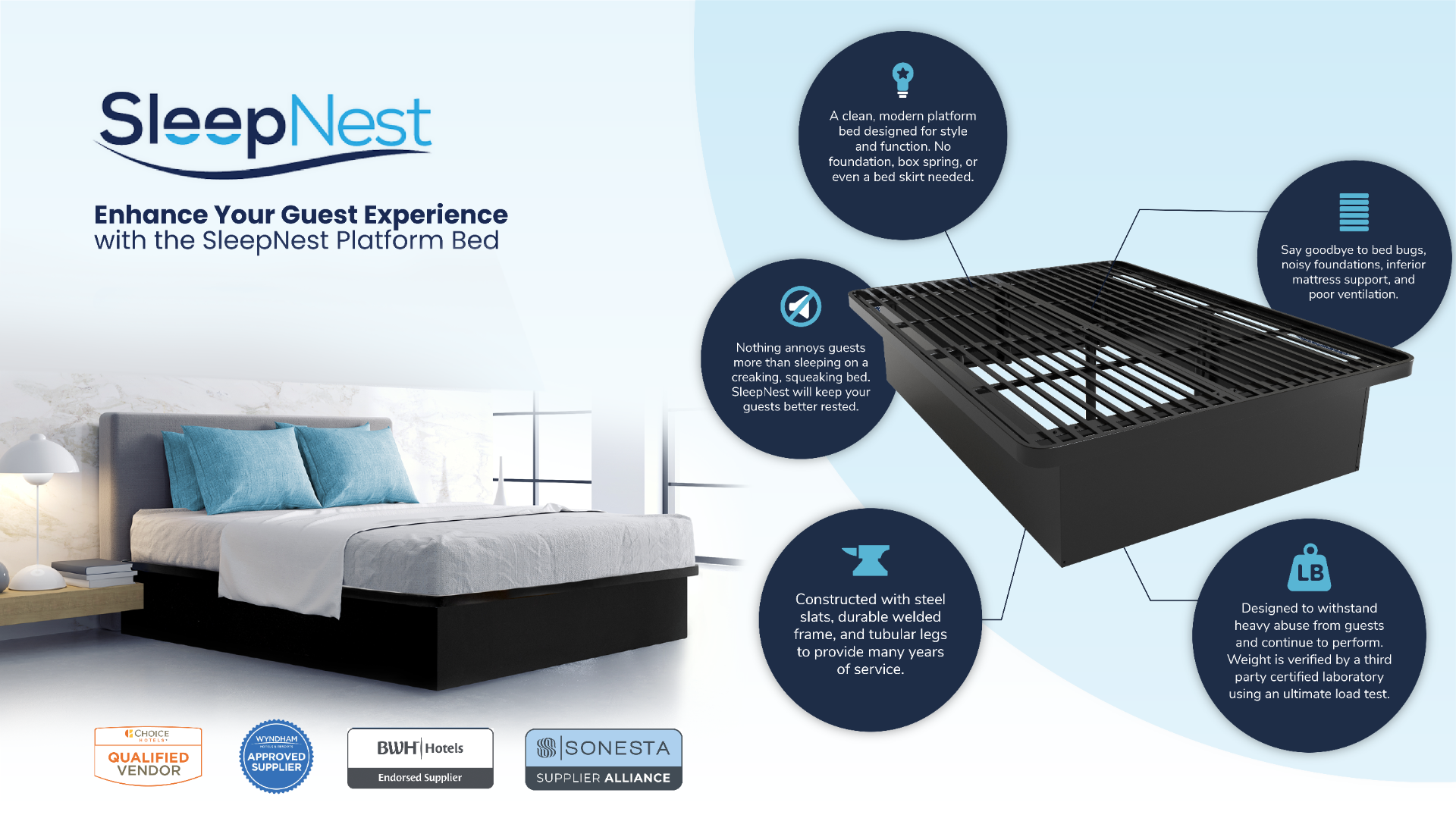 SleepNest offers all hospitality mattress sizes including California King and Hotel King